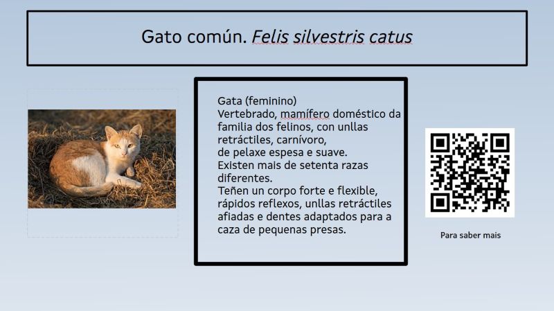 | Presentación | Respeta moi ben a orde dos distintos grupos de animais. Non esquece ningún. (5) | Respeta ben a orde dos distintos grupos de animais. Esquece algún. (4) | Respeta suficientemente a orde dos distintos grupos de animais e esquece varios. (3) | Na maioría non respeta a orde. Esquécese de moitos. (1) |