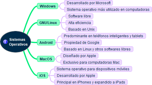 | Esquema "Ejemplos de sistemas operativos " - sección 3.2. Entorno virtual | Esquema "Ejemplos de sistemas operativos" editable MM (Freemind) PNG |