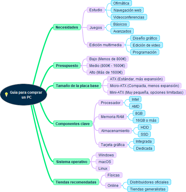 | Esquema "Guía para comprar un PC" - sección 3.1 Hardware interno | Esquema "Guía para comprar un PC" editable MM (Freemind) PNG |