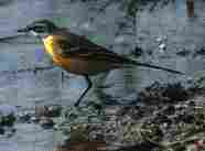 estival, e que sempre aparece ligada a cursos de auga. De feitura semellante á lavandeira branca, ten o peito amarelo. Aliméntase de insectos, principalmente mosquitos e saltóns. |
