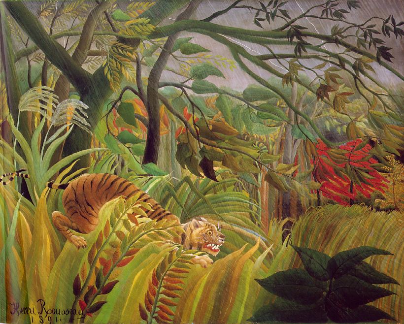 Rousseau pintou moitas selvas con animais salvaxes, ainda que nunca estivo nelas. Disfrutaba imaxinándoas e así as pintaba nos seus cadros