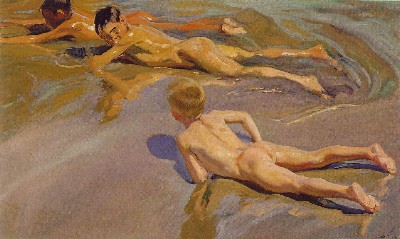 pintaba o ceo e o mar, este cadro representa a dous nenos espidos bañándose