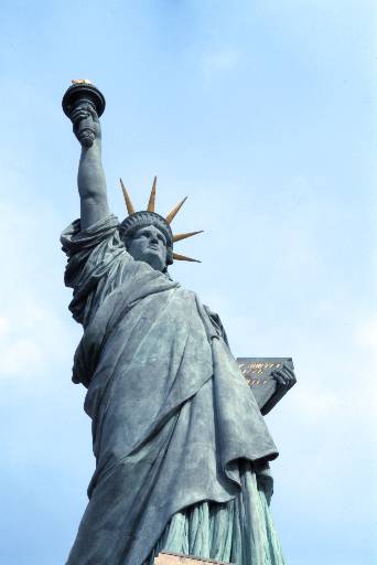 A estatua de liberdade, preto da casa da radio na illa dos cisnes