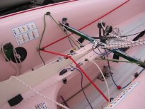 a randeeira esguía bambán delgado, fino. O barco móvese de un lado ao outro do horizonte