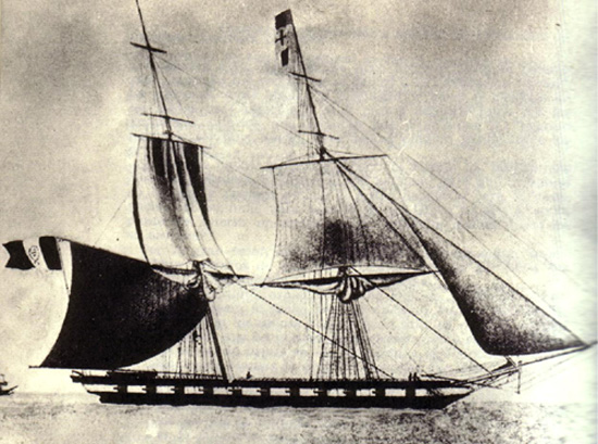 .................."Perdeuse" canda o bergantín- bergantín: veleiro de dous mastros con velas cuadrangulares