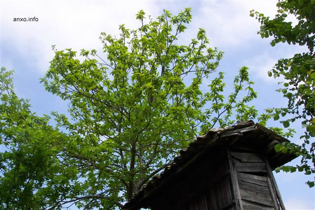 Castiñeiro novo xunto a vello hórreo, en Pazos, Sarreaus
