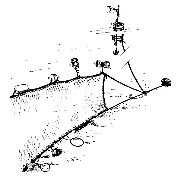 coseu de présa a relinga do horizonte de novo a imaxe de coser, cando o barco se move; relinga: corda en que van colocadas as cortizas e chumbos na rede de pesca