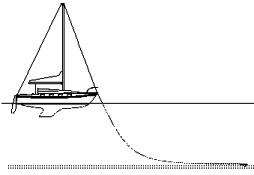 a sotavento dunha singradura sotavento: lado contrario a onde sopra o vento. singradura: camiño que percorre a nave. Sen vento e parados