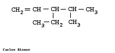 · Comézase a contar polo extremo máis preto a un dobre enlace, co que o dobre enlace ten preferencia sobre as cadeas laterais á hora de nomear os carbonos, e noméase o hidrocarburo especificando o primeiro carbono que contén ese dobre enlace.