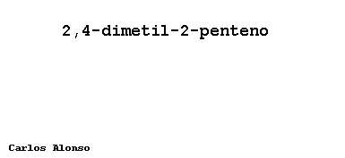 Escribe a cadea máis longa de carbonos, neste caso 5 carbonos. Sitúa o dobre enlace no carbono que nos indica o localizador, o 2. Sitúa os radicais sobre a cadea coa axuda dos localizadores. Completa o esqueleto de carbonos con hidróxenos ata completar os catro enlaces de cada carbono.