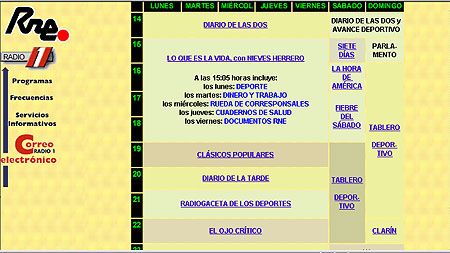 Inicio > Radio > 6 La programación radiofónica > Glosario Glosario Estudio General de Medios (EGM): Es un estudio multimedia (medios impresos, radio, televisión, cine e internet), que, a partir de más de 40.000 encuestas repartidas en tres oleadas (primavera, otoño e invierno), ofrece información no sólo de los índices de seguimiento de los diferentes medios, sino de las características socio-demográficas y estilos de vida de las personas que forman parte de la audiencia en cuestión. El EGM está inscrito en la Asociación para la Investigación de los Medios de Comunicación (AIMC). Parrilla de programación: Es la síntesis de la oferta programática de una emisora. Generalmente, las parrillas son como una especie de plano que contiene el título de los programas y el espacio temporal que ocupan, así como el día en el que se emiten. Observa, por ejemplo, cómo es la parrilla programática de Radio Nacional de España, Radio 1, entre las 14.00h. y las 22.00h. Período de desconexión: Se trata de un espacio de tiempo en el que las emisoras asociadas a las grandes cadenas ofrecen a sus oyentes programación propia, de carácter autonómico y/o local. En función de la hora en la que se produce la desconexión, estos períodos son más o menos extensos. Así, por ejemplo, durante la emisión de los grandes magazines matinales, las desconexiones se suceden generalmente cada hora, pero solo durante unos cinco minutos en los que habitualmente se ofrece información autonómica y/o local y publicidad local. En las franjas del mediodía y de la última hora de la tarde, las desconexiones son mucho más amplias (de una a dos horas), por lo que las emisoras disponen del tiempo necesario para ofrecer programas de mayor entidad.