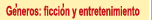 ficción y entretenimiento > Introducción Introducción Ficción y entretenimiento. Si bien la ficción suele estar casi siempre orientada al entretenimiento, los límites del entretenimiento son mucho más amplios que la ficción. "Érase una vez..." La ficción es otro de los pilares de la televisión. El ser humano es una criatura fascinada por los relatos, por las gestas narradas por los contadores de historias. La escena de la comunidad primitiva, reunida alrededor de una hoguera, escuchando atentamente los hechos de personajes ficticios, o directamente fantásticos, sigue reproduciéndose hasta cierto punto hoy en día en nuestros hogares. La ficción televisiva se apoya en los mismos resortes, e incluso absorbe en sus programas a otros medios dedicados tradicionalmente a contar historias, como el cine o el cómic, o crea relatos audiovisuales a partir de historias contadas por maestros de la literatura universal, aunque también ha creado formas propias para la ficción. Pero el entretenimiento dispone en televisión de más recursos a parte, y además, de la ficción, generando contenidos en los que el circo, el espectáculo de variedades, la música, el concurso, o la propia realidad convertida en espectáculo, constituyen los ingredientes de una variopinta oferta de contenidos sin otra finalidad que la de entretener al espectador. Una vez más, los límites pueden ser difusos ¡Que empiece el espectáculo! Esquema de contenidos En el bloque puedes acceder directamente al menú de temas del mismo a través de la pestaña desplegable de la izquierda. Actividad interactiva |
