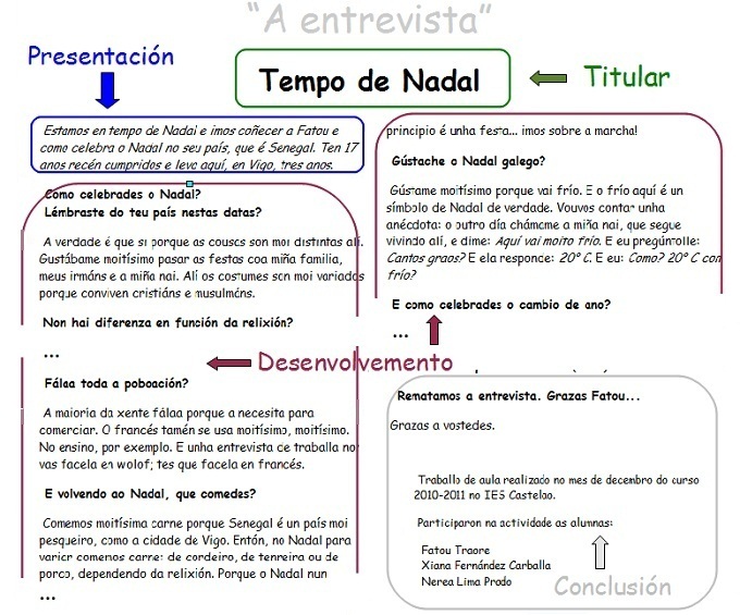 - Presentación: é un parágrafo que presenta a persoa entrevistada e o tema da entrevista.