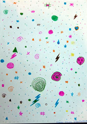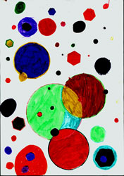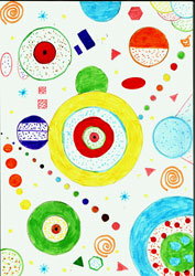 -Estudiar el punto,la linea y el plano como elementos generadores de formas. -Conocer los elementos básicos del lenguaje grafico-plástico (punto, linea, plano) para representar las distintas formas -Conseguir con estas formas las distintas cualidades expresivas de las que forman parte. METODOLOGÍA: En el lenguaje plástico el punto es el elemento visual más simple. La idea que tenemos de un punto es un círculo muy pequeño. Pero si observamos atentamente la marca producida por un lápiz u otro instrumento de dibujo, comprobamos que sus formas son muy diversas. Nosotros vamos a dibujar una composición abstracta a base de puntos, considerando el circulo también como un punto agrandado visualmente. Observa tu dibujo e identifica la sensación visual que predomina en el conjunto: agrupación, dispersión, movimiento, equilibrio. MATERIAL: -Folios. -Colores de madera u otros. |