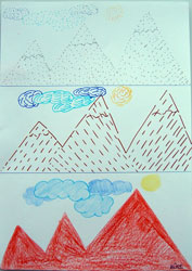 Nestas tres viñetas o alumno terá que debuxar devandita paisaxe de tres formas distintas. Na primeira viñeta con puntos, na segunda con liñas e na terceira con planos.