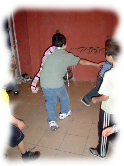 Trátase dun xogo clásico que todos xogamos algunha vez. Xógase nun terreo chairo e sen obstáculos, para evitar caídas.