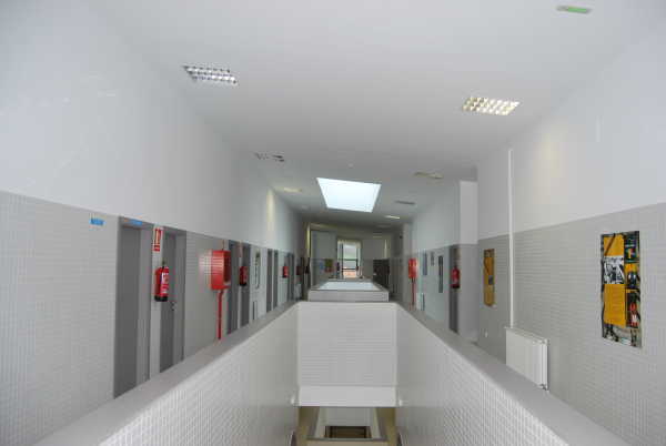 Atopa o punto de fuga e a liña de horizonte na seguinte imaxe e reproduce os trazados fundamentais desta perspectiva interior.