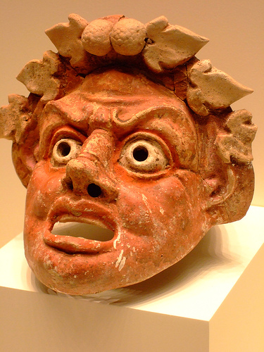 Atribución da imaxe: 'Mask of a Satyr Greek made in+the+eastern+Mediterranean+300-100+BCE+Terracotta' por Mary Harrsch via flickrcc.net