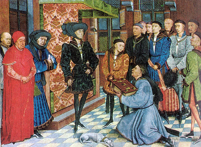 Atribución da Imaxe: ilustración de Les Chroniques de Hainaut por Rogier van der Weyden escaneado por James Laver vía Wikimedia Commons