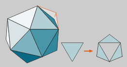 se obtiene la primera estrella, el icosaedro estrellado.