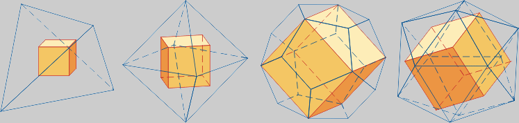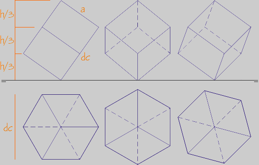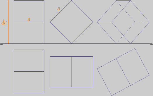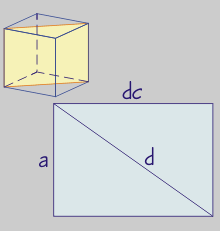 = arista. dc = diagonal de cara. d = diagonal do poliedro. |