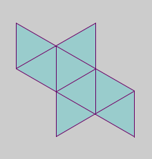 7 eixos. 3 pasan por dous vértices e 4 polos centros de dúas caras* Poliedro dual