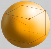 A esfera media pasa polos puntos medios de todas as aristas. O seu diámetro é a distancia entre aristas opostas.