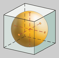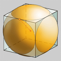 * Existe un centro xeométrico, único para tres esferas:-Esfera inscrita, que toca todas as caras nos seus puntos centrais.