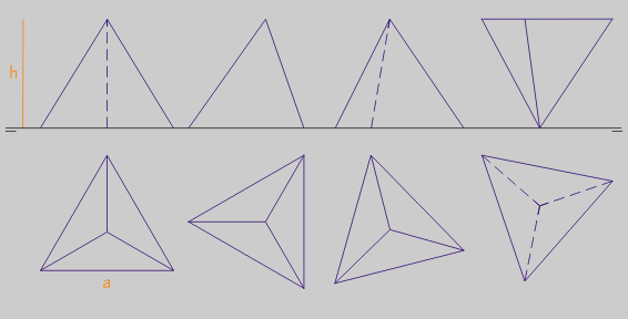 Na obtención pártese dun triángulo equilátero de lado a.Posicións en sistema diédrico sobre unha cara e sobre un vértice: