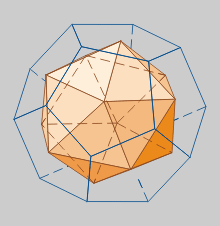 En el Icosaedro cada vértice está en el centro de una cara. Los poliedros son duales.