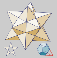En las caras del hexaedro se sitúan seis aristas centradas con una proporción de 1 arespecto a las del cubo. Los ocho vértices no inscritos forman otro cubo de arista la sección áurea del exterior.