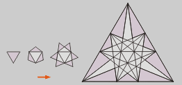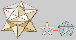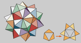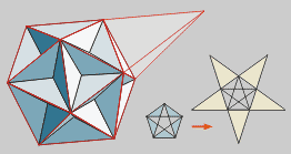 se obtiene la primera estrella, el icosaedro estrellado.
