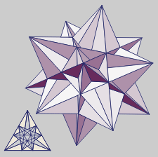 En el Tetraedro cuatro caras están centradas con las del poliedro circunscrito. Las aristas del Icosaedro, prolongadas, cortan los vértices y las secciones áureas de las aristas del Tetraedro.