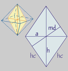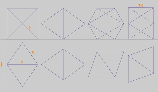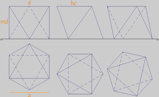 a = arista. dc = diagonal de cara. d = diagonal do poliedro.