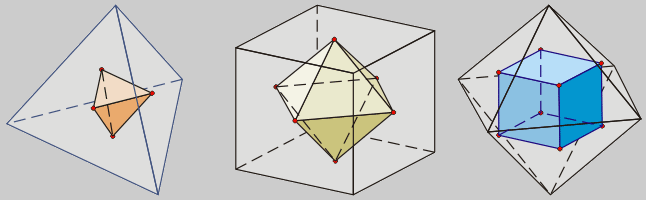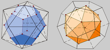 El hexaedro y el octaedro son duales uno del otro, como también el dodecaedro y el icosaedro.