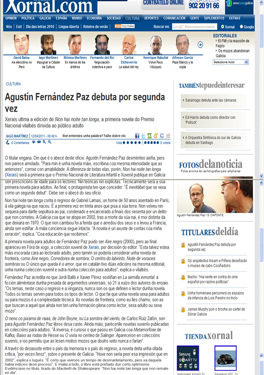 Extraído da edición dixital do diario Galicia Hoxe, 12/04/2011 |