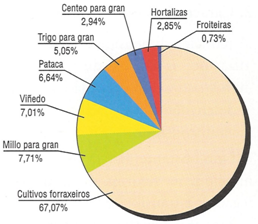 Zona alta (de 200 m a 600 m). Cultívanse patacas, centeo, trigo, millo…