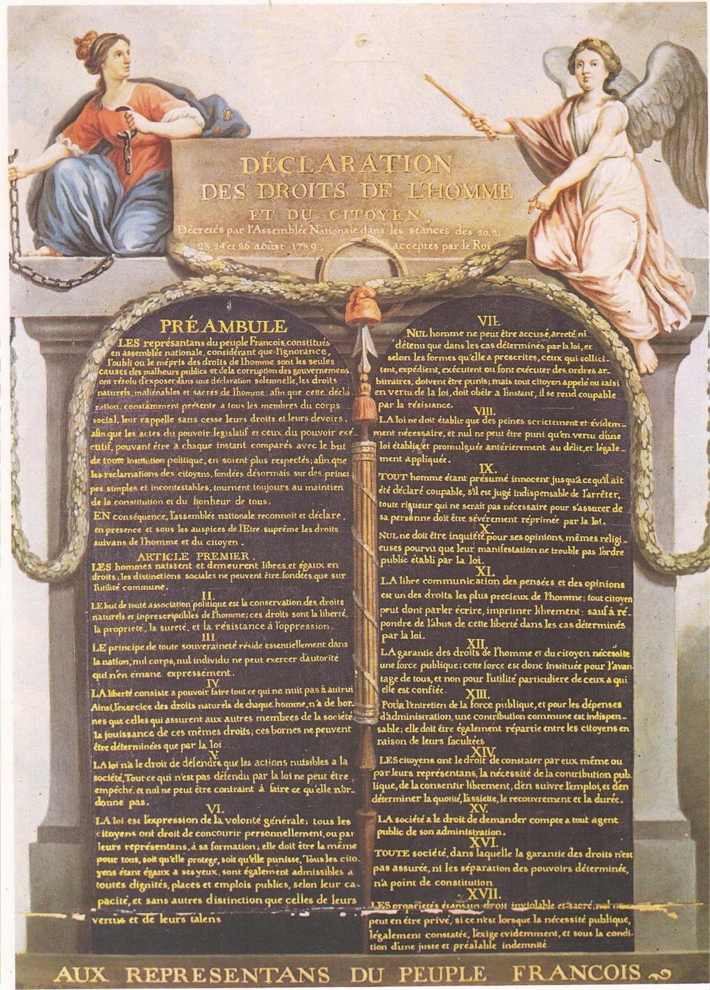 Declaración dos dereitos do home e do cidadán. Este texto inspirou a Constitución francesa de 1791, que serviu de modelo para os demais países europeos.