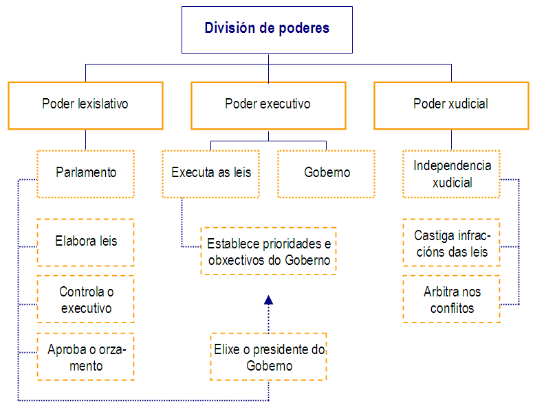Xudicial, que se encarga de ditar sentenzas cando se infrinxan as leis.