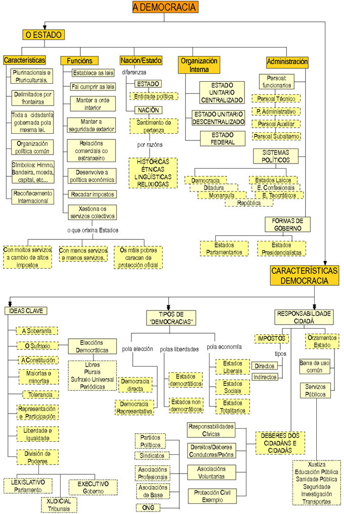 S26. Observe os conceptos relacionados coa democracia e co Estado na árbore explicativa.