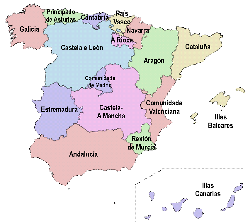 Nas comunidades das Illas Baleares e Canarias, cada illa ten unha administración propia en forma de Consello Insular (Illas Baleares) ou Cabido (Canarias). Ceuta e Melilla son desde 1995 cidades con Estatuto de Autonomía.