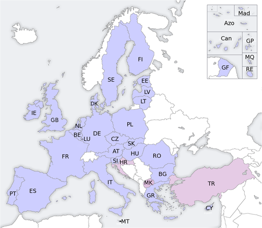 S19. No seguinte mapa político de Europa, sitúe os 27 estados da Unión Europea.