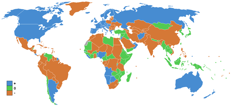 Trace sobre o planisferio a liña do Ecuador. Que saldo migratorio é máis frecuente nos países ecuatoriais?