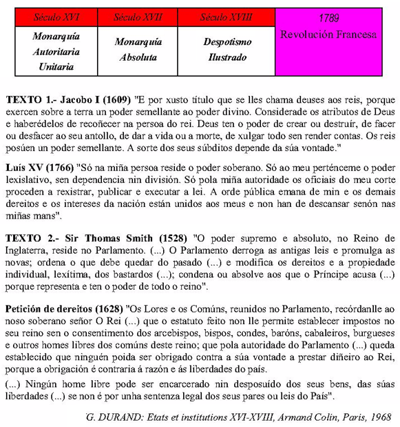 Compare os dous tipos de monarquía aos que se alude nos textos 1 e 2 e complete a táboa.