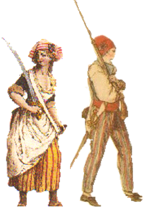 Estas dúas son de sans-culotte: describa e identifique os seus símbolos e explique a que grupos sociais pertencen