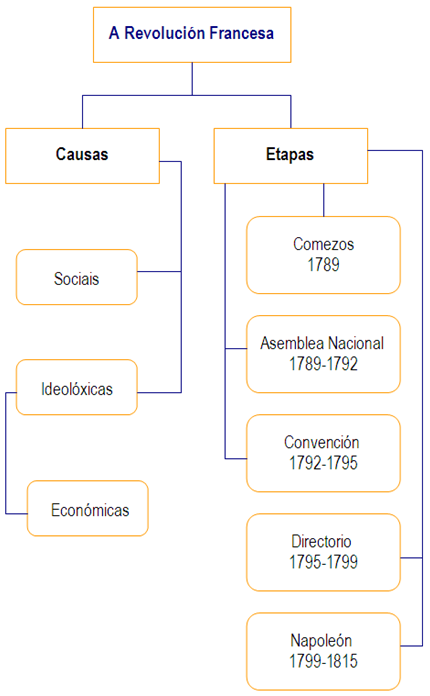 S8. Seguindo o esquema, analice e resuma as causas e as fases da Revolución Francesa.