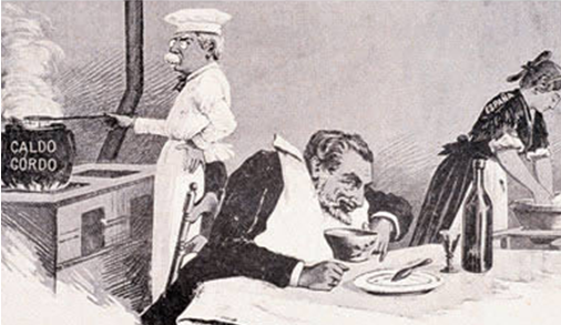 S27. Comente as seguintes caricaturas nas que se ironiza sobre as quendas políticas dos partidos liberais do sistema da Restauración.