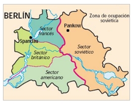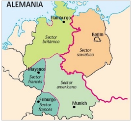 A URSS constituíu a República Democrática de Alemaña, integrada no bloque comunista. Berlín quedou dividida tamén en dúas zonas en 1961 cando as autoridades deste Estado levantaron un muro entre as dúas zonas.