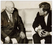 Crise de Cuba. En 1959, Fidel Castro tomou o poder. Rexeitado polos EEUU, achegouse á URSS, ata implantar un réxime comunista en 1961. No verán de 1962 os norteamericanos descobren ramplas de foguetes soviéticos que poderían levar armas atómicas. Xa que logo, a seguridade dos EEUU viuse ameazada. Neste punto, a tensión entre os EEUU e a URSS alcanzou o máximo nivel de toda a Guerra Fría: Kennedy ordenou a blocaxe naval da illa para impedir a chegada de barcos soviéticos, advertíndolle a Kruschev que ordenase aos seus barcos volver ás súas bases ou os Estados Unidos o impedirían pola forza. O mundo enteiro estivo a piques dunha guerra nuclear. Kruschev ordenou a retirada dos seus barcos e as bases de lanzamento foron desmanteladas.