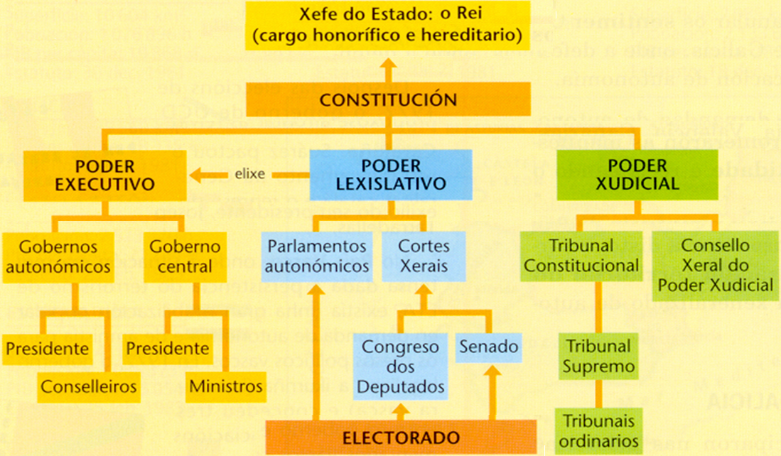 Sistema político español [Gráfico extraído do libro de texto Fisterra 4. Ed. Vicens Vives -ISBN 978-84-316-8743-4-]